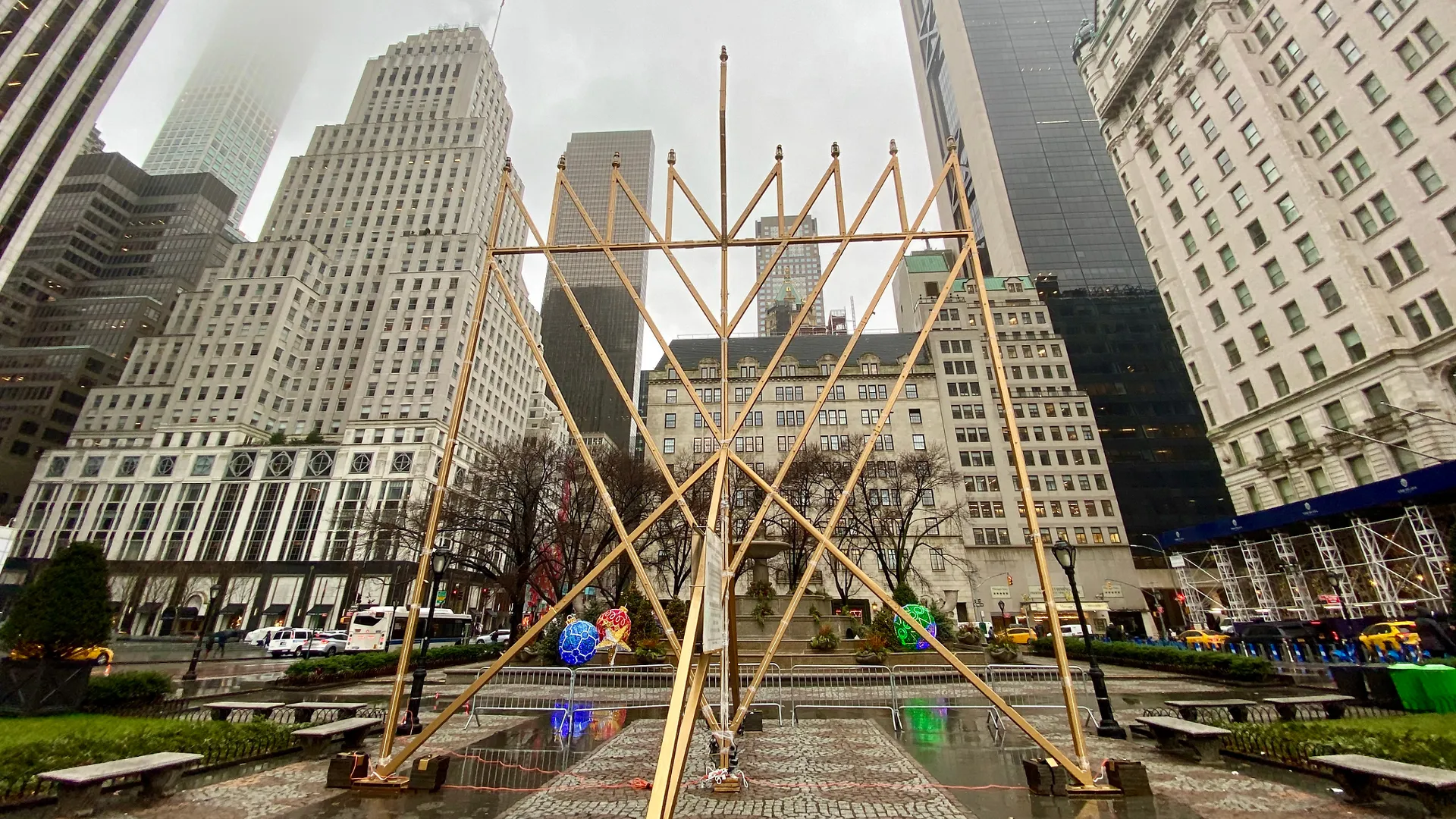 Let’s start with the straight-up news: this Wednesday morning at 8am, just days before Hanukkah officially begins, Chabad will erect its towering 36-foot menorah at Fifth Avenue and 59th Street, directly across from the Plaza Hotel. The candelabra, called World’s Largest Menorah, will be lit each night of the holiday, starting Sunday night and continuing through December 21.